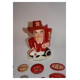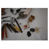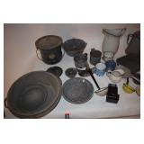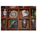 Crocks, (3) 2 Gal RW, 4 Gal RW Churn, 10 Gal RW & Western, Crock Bowls, Spongeware, Western Bowl Preserve Jars, 2 & 4 Gal Crock Jugs, Beater Jar, Dazey 4 Qt Churn, (4) Roberts Wood Milk Crates, Native American Pottery, Hand Woven Bowls/Baskets, Lots of Marbles, Glass Rolling Pins, Old Jars, Bottles, Roseville Pottery, McCoy, Skeleton Keys, Bottle Openers, Post Cards Buffalo Bill, Antique View Finder w/Color & B&W Slides w/Western Scenes, Buffalo Hunt, Native American, Galvanized Wash Tub, GE Desk Fan, Poultry Feeders, Fountain Pens, Collectors Guides for Fishing Lures, McCoy, RedWing, Bottles, Marbles, Carnival Glass, PBR Steins, Quilts, Cups/Saucers, Spice Set, Glassware, China Sets, Brass Fireman's Nozzles, Small Brass Fire Extinguishers, Quilts, Days of the week Tea Towels, Chenille Bed Spreads, Rexall Thermometer, Wood Sled, Ball Bats, 1980 NY CITY Grateful Dead Poster, Dr Pepper Open/Closed Cardboard Sign, Copper Boiler, & Lots More.