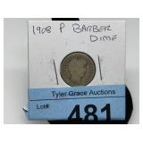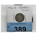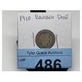 CATALOG TEXT BELOW: 385 - 1911 BARBER SILVER DIME COIN Auctioneer License Information: 17641 |
