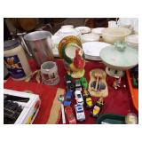 This week we have American Girl dolls, an amazing stamp book with first day covers from the 40's, stamped war envelopes, large selection of very early stamps, stamped envelopes, really an amazing book, coins including mint sets, Morgan and Peace dollars, walking liberty halves, standing liberty quarters, mercury dimes,silver Washington quarters, indian head penny, wheat cents,seated liberty dime, and more, large `tiger, lion and leopard prints,# 115 signed print The Return by John Banovich, vintage wood sleds, wood sided wagon, large wooden horse rocker, reel to reel projector,screen and movie reels, enamelware roasters and pots, large selection of small kitchen appliances, porcelain covered cast iron dutch oven(new), Golden Wheat china set with service for 12, princess house crystal, baking dishes from Poland,collection of coke items including a neon clock, pepsi sign, metal Texaco signs, Seagrams VO5 light, Little Dutch Girl Vogue doll, Madame Alexander 1950s doll with extra outfit, composition doll, Annalee figures, Canadian phillip morris Mountie doll,Village Hallmark Daniel Boone, Molly Pritchard, P.T. Barnum,and Clara Barton, #5 gal. crockery Jug, vintage golden books, raggedy ann paper doll, Minnie mouse brush & comb, Musical Jester,several vintage cookie jars, black American doll, PS3 games, Coke matchbox 1:32 scale cars and trucks, 1:24 scale cars, collecter bottle set, umbrella,beer mugs and stein, marbles, Hallmark pedal fire pumper truck, Barbies, Coach purse, painted feather & feather picture, cat collection, horse figurines and metal accessories, puss N boots, lead glass lamp, glass figurines and paperweights, Westmoreland, many Pyrex mixing bowls singly and in sets, large selection of correlle ware dishes, Storm Front duck decoys, leather elephant, wagner cast iron skillet, sailor figurines, lighthouse lamp, diffuser, beehive honey bear cannister set, coke mirror, slate owl painting, knick knack shelf, large collection of vintage sports cards from the 60's, 70's9over 700 of baseball, 700 of footaball,and 700-800 70's 80's football) including baseball, football, hockey, trays of vintage jewelry, pages full of matchbook covers all vintage, Hubley toy tow truck, japan us army truck, 1991 complete set of cards, jadite dishes, pack n play, beanie babies, Erie book, elephant tea pot, light houses, plastic beer trays, Harley coasters, troll dolls, pewter figurines, oval wood snack tray set,halloween costumes, Yengling banner, hot wheels, die cast cars, belt buckles,wall décor, trays of tools and tool set, and lots of clean household items