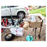 Tools and Hardware Memphis Folding Stairs in Box, Shovels, Yard Tools, Power Tools, Hardware, Metal Fittings, Gas Fittings, Snake, Crestline Brazier IOB, Vintage Wood Hard Hat, Outdoor Lighting with Outlets, Chicken Wire, Range Hoods, Hand Tools, Craftsman Circular Saw IOB, Air Compressor, Snow Blowers, Yard Spreaders, 2 Edgers, Weed Whacker, Lawn Mowers, Vintage Sears Car Jack, Vintage Hubcaps, Rototiller, Craftsman Drill, Speed-O-Matic Print Automatic Addresser with Metal Plates, Hear Guard Head Set, Craftsman Sabre Saw, Large Flashlights, Bench Vise, Outdoor Light Fixtures, Breaker Sub panel, Orbital Sander, Concrete , Vintage Cement Lawn Roller, Chemicals, Cleaners, Drill, Saws, and SO MUCH MORE