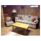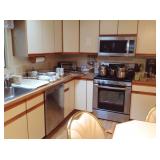Nice clean Cape Cod ranch furnishings include 2 upholstered sofas, upholstered chair and ottoman, matching coffee and end tables, flat screen tv, leather recliners, braided rugs and others, vacs books, lamps, fireplace tools, framed artwork, sofa table, storage bench, dining table with 6 chairs, Kitchenware, cookware, AC units, desk, office stuff, queen and twin beds, triple dresser and tall chest, mirrors, men's and women's clothing, night stands, linens, work shop, hand and power tools, John Deere lawn mower, wheel barrow, patio furniture, new grill, hammock, plants and much more. |
