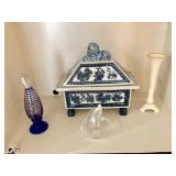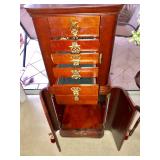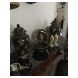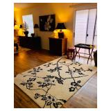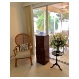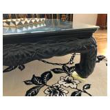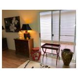 -- Bombay Entry Table - (30W 12D 30H) -- Vintage German Grandfather Clock - Inspected and lubricated - $300 - (18W 10D 80H) -- Classic Chinese Black Lacquer Breakfront - $895 - (90W 18D 82H) -- Bassett White-with-Black-Piping Sofa - $100 - (77W 42D 36H) -- Chinese Black Lacquer Low Console/Credenza - $495 - (76W 18D 30H) SOLD -- Carved Black Coffee Table - $60 - (42W 42L 17H) -- American Drew Chippendale-style (kneehole) Chest of Drawers - $375 - (37W 17D 32H) -- Vintage Bombay Spider-leg Tray Table -- Several Asian-Inspired Occasional Tables -- Vintage Lamp Table -- 3 Metal Bar Stools - (31-1/2H Seat) -- Wine Rack with Bamboo Top - (28W 11D 27H) -- Rattan Wicker Hoop-back Chair - $115 -- Asian-Inspired Standing Jewelry Armoire -- Tall Wicker Lingerie Chest - (22W 17D 51H) -- TV Armoire with 4 Drawers - The American Masterpiece Collection, Chicory White - $165 - (42W 24D 77-1/2H) -- Entry Table / Writing Desk w/claw feet - $95 - (50W 18D 28H) -- L-Shaped Black Metal and Glass top Corner Desk - $100 - (Appx 62" each direction from corner) -- Vintage Brighton Pavilion-style Chinoiserie Chair - $140 -- Lanai Table w/4 Sling-back Chairs