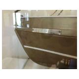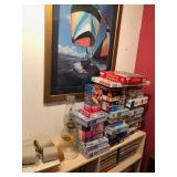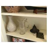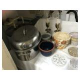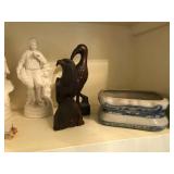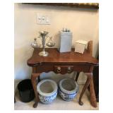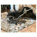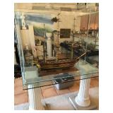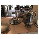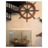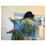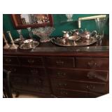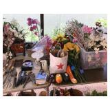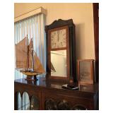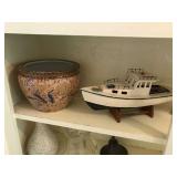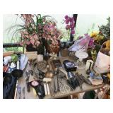 PARTIAL LIST: CORNER CUPBOARD, BABY GRAND PIANO BY CLARENDEN, A LOT OF YARD ART & STATUARY, PAINTINGS & PRINTS, SET OF MINTON GOLD PANDORA, MINTON GOLD & COBALT BLUE LARGE SOUP BOWLS, BOAT MODELS, SLANT FRONT DESK, CHINESE SCREEN, TVs, MAHOGANY DRESSER, MIRROR, & CHEST; ANTIQUE CLOCKS, 1 CROCK & 3 JUGS, A LOT OF SILVER PLATE, SHIP'S NAME PLATE, GORHAM ENAMEL FLOWER ARRANGEMENT, JAPANESE SILK , SET OF EVERYDAY DISHES, LOTS OF GLASSWARE, SEASHELLS, KITCHENWARE & MORE ADDED AS WE DIG OUT. |