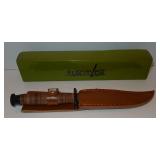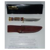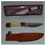 Skinner Knife. Chipaway Cutlery #CW-340 - Ajax Mountain Skinner Knife with Leather Belt Sheath and original box. Overall length is 11". Condition: Very Good |