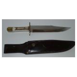 Bowie Knife. Chipaway Cutlery Bowie knife with wood handle & brass guard. Overall Length is 16". Comes with a brown leather belt sheath. Condition: Very Good - needs to be cleaned |