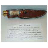 Bowie Knife. Voss Cutlery Stag Bowie Knife with Leather Sheath and Certificate. German Stainless. Overall length is 10". Currently Out of Stock online - Retail Value: $199.00. Condition: Very Good |