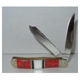 Pocket Knife. Silverhorse Stoneworks Red Turquoise Mother of Pearl - Little Trapper Premier Pocket Knife. Measures 3.5" overall. 440 Stainless Steel Blade. Condition: Very Good |