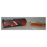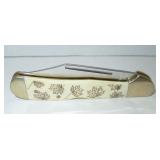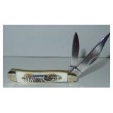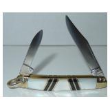 Pocket Knife. Steel Warrior - Red, White and Blue Bone Peanut Folding Pocket Knife. Item# SW-107RWB measures 3.25" overall with original box. Condition: Very Good |