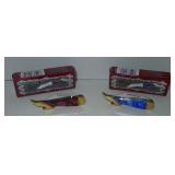 Pocket Knives. Frost Cutlery and Steel Warrior Pocket Knives measuring 2.75" and 4" Locking overall. Please see additional pictures for detail. Condition: Very Good |