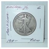 Half Dollar. 1918 Walking Liberty Half Dollar - .900 Silver. Condition: AG |