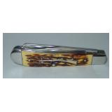 Pocket Knife. Case Amber Medium Stockman Folding Knife - #6318 measures 3.5" overall and has 3 Blades. Please see additional pictures for detail. Retail value $72.99. Condition: Very Good |
