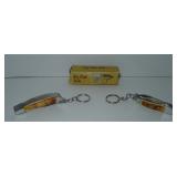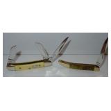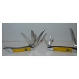 Pocket Knives. Royal Ridge Runner with 3 Blades and measuring 3.5" overall. Also includes a Hen & Rooster pocket knife measuring 2.5" overall. Please see additional pictures for detail. Condition: Very Good |