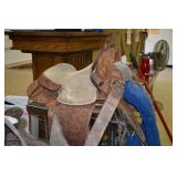 Las Animas Police Supplies (Shirts,Jackets, Equipment), dozens of handmade afghans, vintage dresses, several handmade vintage quilts, 4 Western saddles, reloading supplies, over 40 pieces of jewelry including 14 karat gold, lots of western belt buckles, vintage children spurs, vintage tins, vintage wooden boxes, Southwest art, power tools, toolboxes, handt ools, camping supplies, World War II army items, insulators, wash boards, vintage home decor ranch pieces, depression era lamps, butter churn, Cow collection, stereo equipment, hurricane lamps, mid century modern decorations, vintage bottles, vintage scales, housewares, kitchen supplies, small kitchen appliances, vintage crock, tons of linens and towels, hundreds Romance novels, tons of DVDs and PlayStation 2 games, two large solid wooden doors, tires (all sizes), puzzles, incredible amounts of supplies for crafts including yarn, lace, thread, paints (OVER 30 boxes), calf table, barbecue pit, golf cart, 425 gallon water tank, 200+ Railroad ties, 11 Telephone Poles, 24' Solid Redwood Beam, kitchen sink, small pull behind trailer for lawn tractor, fishing poles, compressor, table saws, bench press, band saw, arc welder, electric welder, occasional tables, wing back chairs, vintage desks, southwest style wall unit, modern glass kitchen table, Beautiful wood bedroom set, antique buffets, antique sewing machine, bicycles, pavers, milk cans, mid century modern standing ashtrays, large collection of Stephen King books, complete Louis L'Amour set, 1900s Ericsson Telephone, vintage wall clock, cowboy hats too much to list-- |