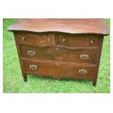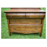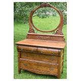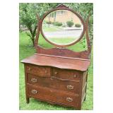 Serpentine Front Oak Dresser w/ Mirror, Applied Carvings 43x22x69 |