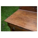 Oak Dresser w/ Mirror, Applied Carvings, Barrel Design Top Drawers 45x21x70 |