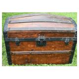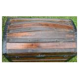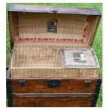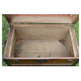 Hump Back Wood Trunk w/ Metal Bandings, Till w/ Original Paper 26x15x18 |