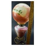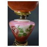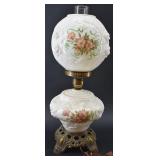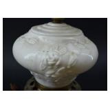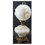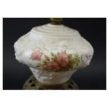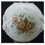 Floral Decorated, Embossed Milk Glass Parlor Lamp |
