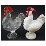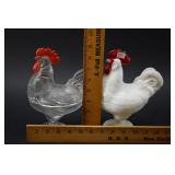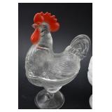 2 Piece Rooster Dishes (clear has small base chip) |