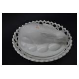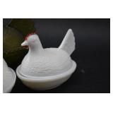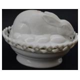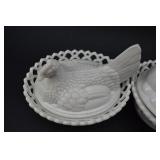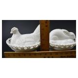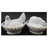 Westmoreland Milkglass Hen & Rabbit On Nest 2 Piece Dishes |