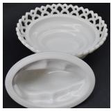 Milkglass Covered Compotes, Bowl and Vase |