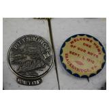 Medals and Pins - Duquesne Kennel Club, Delegate Pittsburgh Arrowhead Shaped, Fireman Assoc. Delegate, Pittsburgh Money Clip, WWI Welcome Home Pin Back Button, Western Pa Firemen's Assoc. Member, New Haven Hose Co. Connellsville |