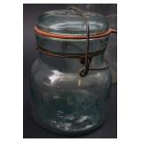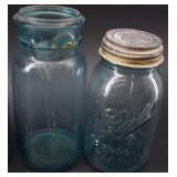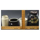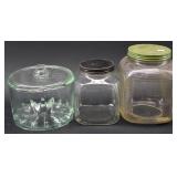 Glass Cheese Preserver and 2 Old Store Jars |
