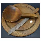 Wood Bread Plate w/ Knife and Wood Butter Paddle |