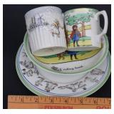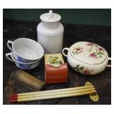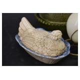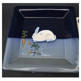 Bunny Themed Items - Blue & Grey Pottery, Brass Candle Holder, Clock, Etc. |