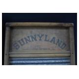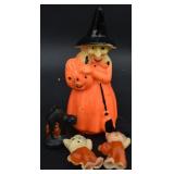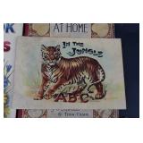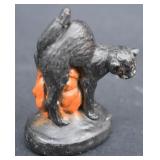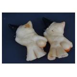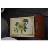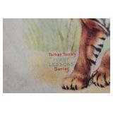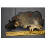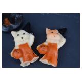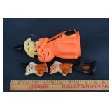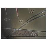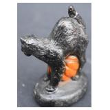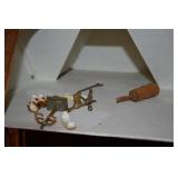 Painted Wood Rabbit Plaque Artist Signed and Painted Tin Cat w/ Fish Cart by Gillaspy |