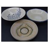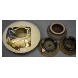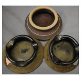 Modern Art Pottery Fish Bowl and 2 Sets Colanders w/ Under Plates Signed |