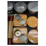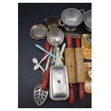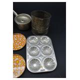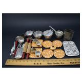 Vintage Cottage Cheese Tin Lids, Mess Kit, Ice Cream Scoops |