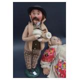 Painted Clown Figurine On Alabaster Bass Signed Ron 88 |