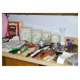 | TEAK FURNITURE, FLEXSTEEL SOFA, ANTIQUE MAHOGANY CORNER CABINET, GARAGE TOOLS, KING BED, LAMPS, DECOR, ANTIQUE OAK WASHSTAND, OFFICE SUPPLIES, WOMENS CLOTHING, BOLO TIES, LOADS OF KITCHEN, AND MORE! |