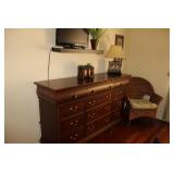 Broyhill Queen bedroom set Side entry table wicker furniture Broyhill Dining table with 6 chairs Breakfast table with 4 chairs wrought iron outdoor furniture Sofa and loveseat end tables coffee table lamps TV hutch pictures jewelry chest sitting chairs Broyhill King 4 poster bedroom set Bike garage items kitchen items decor misc items