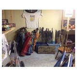 Pickers paradise vintage and antique collectibles, fishing, hunting, crafting, ect. Items include taxidermy, vintage harpoon, books, vintage electronics, oil paintings, framed artwork, maps, charts, Spinning wheel, antique cast iron doorstops, Curio cabinets, gate leg table, flags,china, glassware, hutch, fireplace tools, andirons, bean pots, copper pcs., pine dining table 6 chairs matching hutch, clocks, sandwich cup plates, Jewerly, antique dental sterilization table, kitchenware and cookware, flatware, sm. Appliances, pine chest, office supplies, records, drop front desk, file cabinets, sewing machine, vintage typewriters, double dresser, tall chest, rockers, hair care products, loads of clothing, linens, women's accessories, shoes, ac units, vac, religious items, seasonal items, antique bottle collection, baskets, crocks, washer, dryer, tools, antique work bench, cameras, fish tank, fishing rods and reels by penn and others, boat motor stand, oars, golf clubs wooden shaft and others, golf bags, Boy Scouts uniforms, patches, gun safe, vintage and antique toys, matchbox, erector set, slot car track, remote control cars, toy boxes, doll house and much more. |