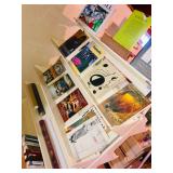 This home is filled with high end audio hi-fi equipment, albums, books, furniture, electronics, households, work-out equipment, Bowflex machine, artwork, riding lawn mower, board games, tchotchkes, tools,vintage toys, clothes, musical instruments and so much more. |