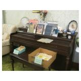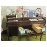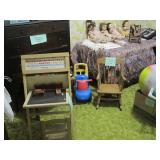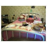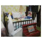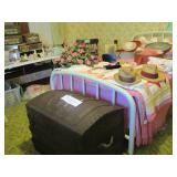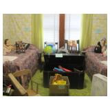 Large collection of German Crystal and Nutcrackers, Hummel figurine, music boxes and wall plaques, Roseville Pottery, German China Set, Noritake China Set, Silver cabinet with contents, round oak coffee table, sleeper sofa, Piano, fan back chair, 2 upholstered arm chairs, barrister bookcase, kitchen hutch and pie safe, working 1960’s Frigidaire stove, enamel top cabinet, microwave and cart, 3 rolling carts, Ethan Allen China Cabinet, oak library table, Tell City dining table with 6 chairs and 2 leaves, white metal bed, 2 twin beds and bunk bed set. Antique camel back trunks, Detroit Car Trunk, chest of drawers, rocking chairs, depression glass, cut and pressed glass, kitchenware and pottery, 1950s/1960s dolls Kenmore washer and dryer, small refrigerator, 1950s TV, 1930s/1940s floor radios, record player and records, wash stand, end tables, sewing machine, Wedding Dress with accessories, purses, hats, toys, antique baby crib and school desk, books , outdoor patio chairs, antique metal patio chairs, 2 camping tents, pots/pans, gardening tools, grill and much more. |
