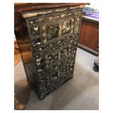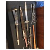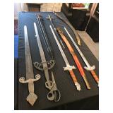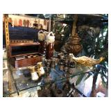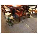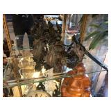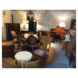 Antique & Quality Oriental Furniture including fantastic solid Rosewood Dining Table, 8 chairs and large China Closet, Mother-of-Pearl Chests, Oriental Carved Tea Tables, French style 7 piece Bedroom Suite, Victorian Upholstery, Modern Dining Room pieces, New black Leather Model Home Sofas, 2 Oak Art Deco Grandfather Clocks, Belgium Carved Hutch, etc., Sterling Flatware includes Tiffany Flatware, much Holloware Bowls, Plates, etc., Art including Prints, Oil Paintings, Etchings, Costume Jewelry, Orientalia includes Cloissone, Brass and Bronze, Porcelains, Kimono Collection, 3 piece Italian style Clock Garniture, Set Royal Danube China, Chess Set Bronze Philip Ratner, large selection old and new Swords, Daggers, etc., old Scale, Antique Pickle Barrel, Primitives and more!