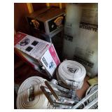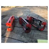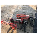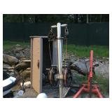 Tools: Alum pump jacks, (3) Alum scaffold picks, Scaffolding, Battery powered scaffolding, Large amount of misc hand tools, Constuction tools, Nail guns, Concrete tools, 60' Werner alum ladder, 40' Fiberglass ladder, Standing seam roof clamps, Regular tools boxes, Wrenches, Ratchets, Screwdrivers, Air tools, Barn jack, R.R. jack, Electric Emglo compressor, Broad axes, Adz, Masonry core bits, Masonry drill bits, (2) Complete "Rattle-stick" vibrators, Adhesive guns, Shop Vacs, Porter Cable circular saw, (2) Standing metal seam clamps, Large exhaust fan w/louvers, (4) Cases polyethylene tape, 10 gallon brown siding & roof paint, 10' Electric conveyer system, Constuction heater, Pair of heavy ramps,