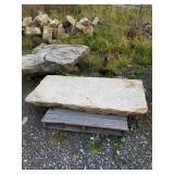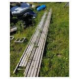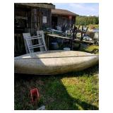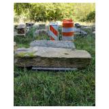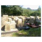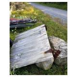 Misc: 100 tons cut barn stone, (3) Calf hutches, Incubators, Nylon poultry netting for fly pens, Cannon ball track, Flat barn track, Outside wall light packs, 14' John boat, 12" V bottom 12', Fiberglass canoe, Metal signs, Barb wire spools, Farm gates, Windows, Doors, Alum insulated garage 9'x6'6" w/opener, Bowling pins, Misc rough cut lumber stacks, Barn beams, Scrap pile, Misc culvert & culvert fittings, Steel beams, Soft pretzel machine, Evenrude 9.9,