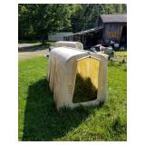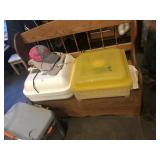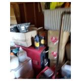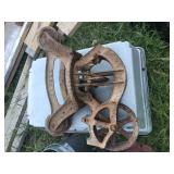Households/Collectables: Freezer, Misc households, (4) Cast iron kettles, (2) Hay Trollies,