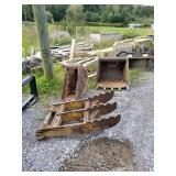 Equipment/Tractors: Caterpillar 307 1997 6000hrs +/-, Bobcat 863 Rubber tire skid loader, Harry Ferguson tractor, 60" ATV mower drag behind "Swisher", Gas powered wheel barrow, Hay wagon, 16' flat wagon, Two horse trailer, Arctic Cat 440 Panther 300 miles, Drag discs, Spike tooth harrow, 15' Bat wing Bush Hog T1700, Swisher 60' Drag mower, Two horse trailer, Extra Caterpillar buckets,