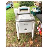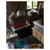 Misc: Moore's gas heater stove -Circa early 1900's, Bicycles, Costume jewelry, Lots of Crafting & Quilting supplies, Filter Queen sweeper, Crockery set (Amish golf), Badmitten, Picnic baskets, Old game news, Books, Lots of Christmas decorations, New Deal trade sewing machine,