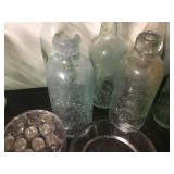 Antiques/Collectables: Globe Wood Fired Kitchen Stove~ excellent shape, Dated Jan 6, 1931, Extensive Glass bottle collection, Several milk bottles, Early H.J. Heinz, Over 100 Medicine bottles, Many beverage bottles, Green & Blue jars~many pre 1900's, Oil lamps, Crock bowls, Woolrich Hunting suit, Woolrich shirts, Vintage suitcases