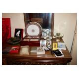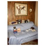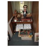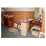 Sofa, Tables, Chairs, Artwork, Jewlery, Lladro, Grandfather Clock, Records, Curio Cabinet, Roll Top Desk, Bedroom set, Steins, Beam's Porcelain Decanters, Desks, Mirrors, Games, Washer, Dryer, Refrigerator, China, Craftsman Lawn Mower, Bugs Bunny Warner Brothers Animation Baseball Cell, Clothing and so much more. |