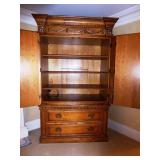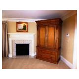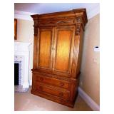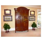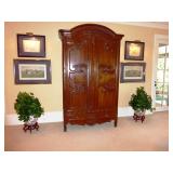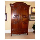 - Heavily carved mahogany armoire with scrollwork and carved bows, tassels, & fruit