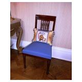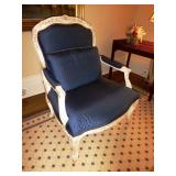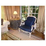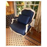 - Perlmutter Freiwald denim blue ladder back armchair with upholstered seat