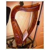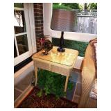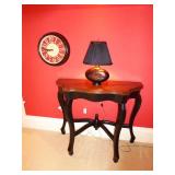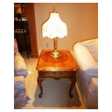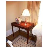 - Mahogany end table with Lyre detailed sides and brass caster feet