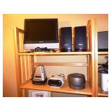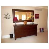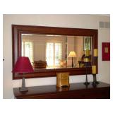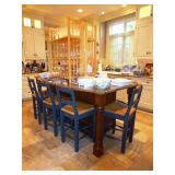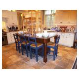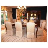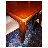 - Mission-style cherry dining table with 1 leaf (Extends from 62” to 82”) & 8 chairs (2 Host, 6 side)