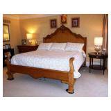 - Century French-style bedroom suite - carved king bed, large 4-drawer chest, & heavily carved armoire with classic columns & applied swag